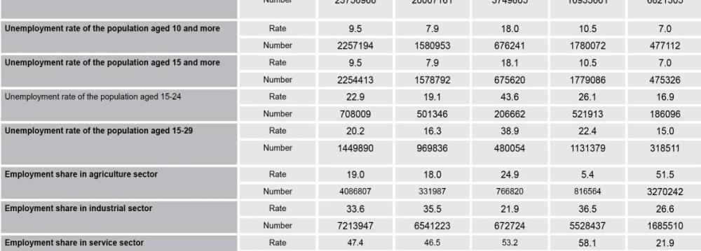 Across various economic sectors, the service sector with 47.4 percent contributed the biggest share to the employment rate. The industrial (33.6 percent) and agriculture (19.0 percent) sectors were ranked second and third, respectively, in this regard.