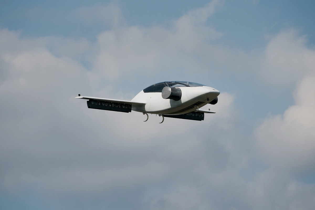 The craft is powered by 36 separate jet engines mounted on its 10-meter long wings via 12 movable flaps. At take-off, the flaps are pointed downwards to provide vertical lift. And once airborne, the flaps gradually tilt into a horizontal position, providing forward thrust.