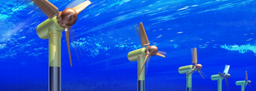 The large underwater turbines are placed in areas with high tidal movements, and are designed to capture the kinetic motion of the ebbing and surging of ocean tides in order to produce electricity. Tidal power has great potential for future power and electricity generation because of the massive size of the oceans.
