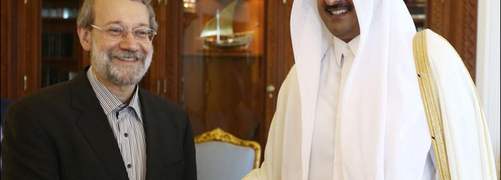 In a meeting with Parliament Speaker Ali Larijani on Wednesday in Doha, the Qatari emir said his country is in favor of holding dialogue to find solutions to regional problems.