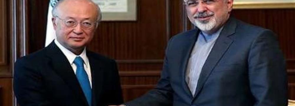 Amano, for his part, expressed pleasure with Iran’s constructive collaboration with the IAEA as well as the progress made in nuclear negotiations between Iran and the six powers, saying the UN nuclear agency is determined to play an efficient role to help resolve the outstanding issues in this regard.