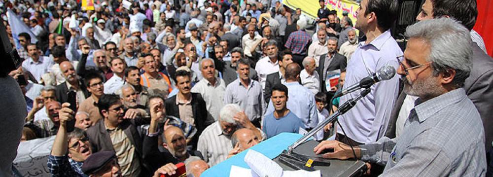Head of Veteran Workers Association Hassan Sadeqi said that President Hassan Rouhani’s government does support the workers, but more should be done to improve their lot. The state news agency said the rally in Tehran was held after eight years.