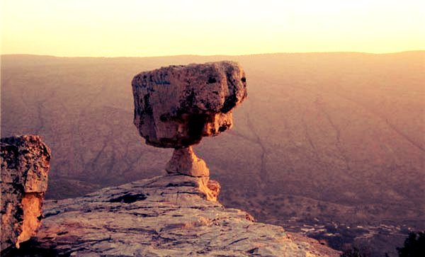 The large rock, which had remained balanced on a smaller one for hundreds of years, overlooked the abandoned village of Mahgardi. The rock, called Sang-Chehreh, was three meters long and two meters wide.